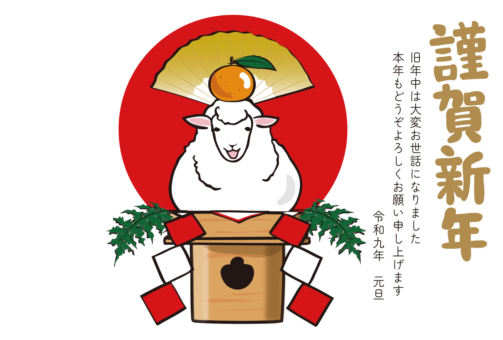 年賀状テンプレート「未(ひつじ)」羊の鏡餅ダウンロード