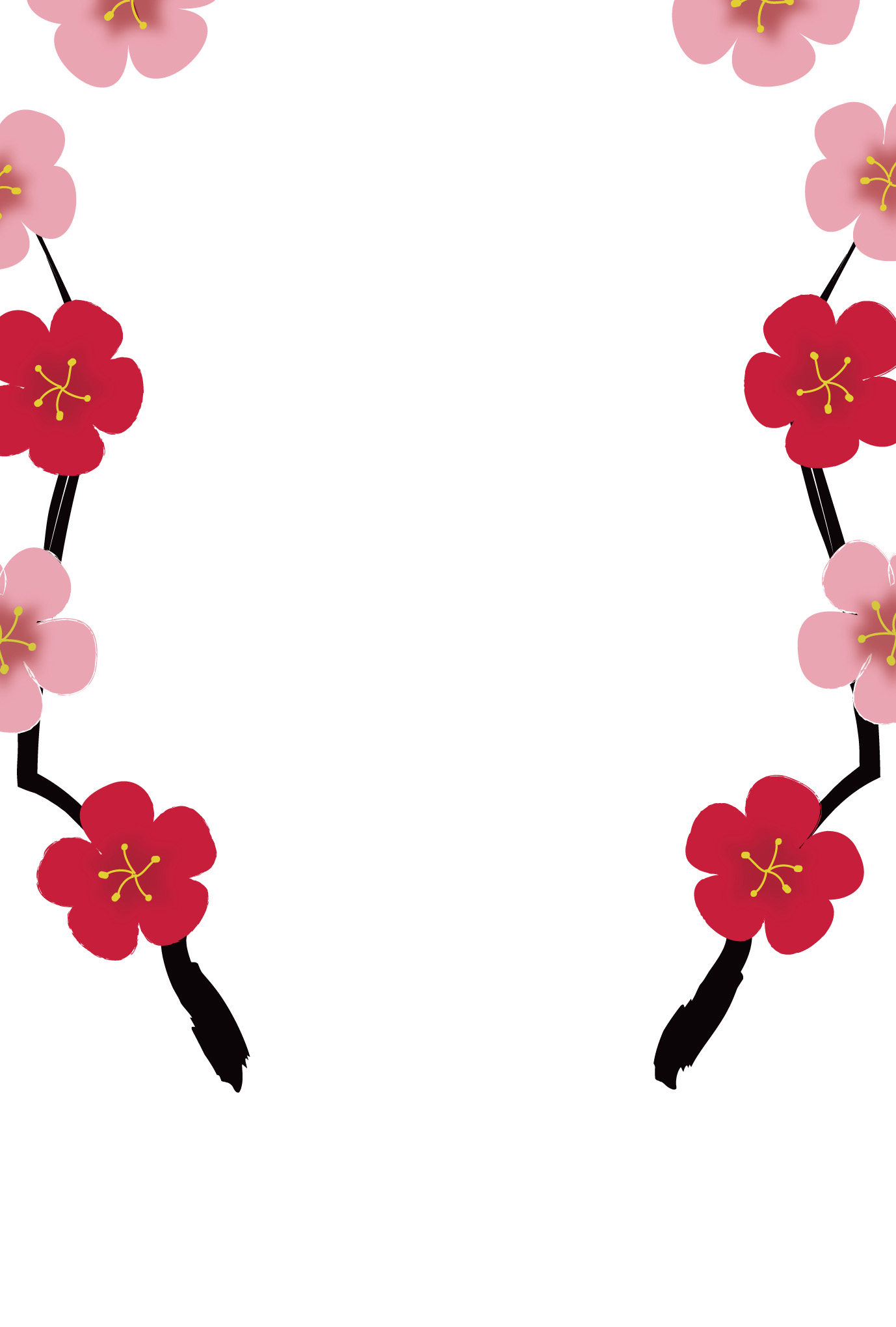 年賀状テンプレート「梅」華やかな梅のフレーム2ダウンロード
