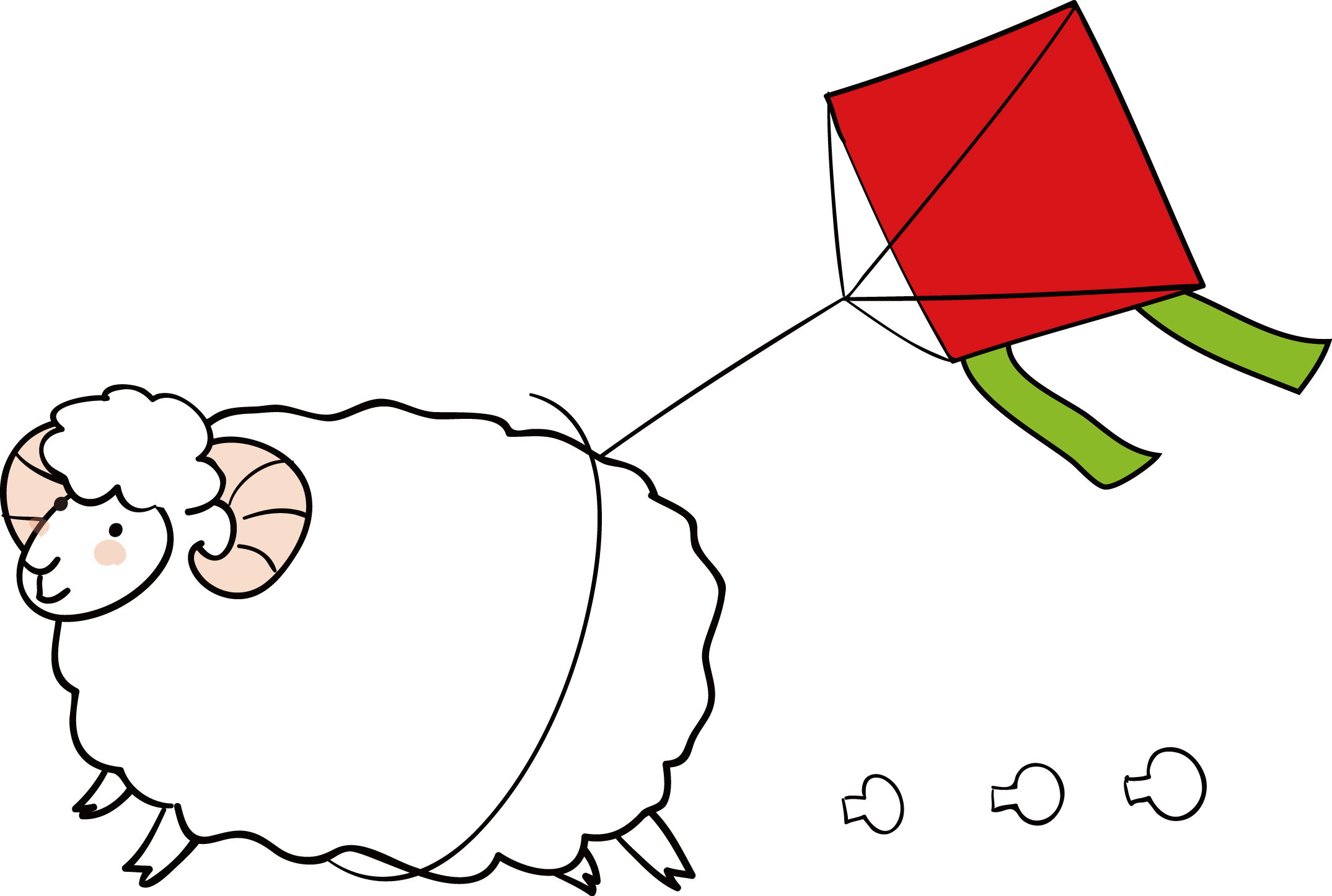 凧を巻きつけて走るゆるいふわもこ羊のイラスト素材です